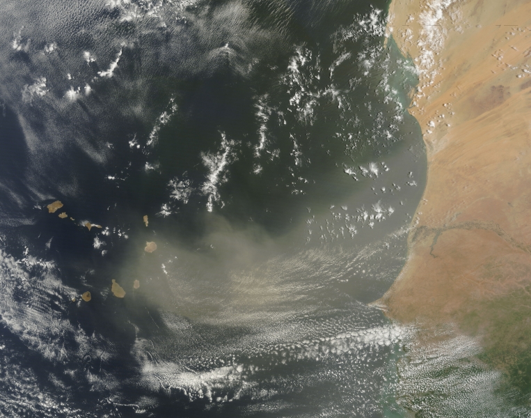 Additional learning (YES!): A lot of Saharan dust makes it 6,400 km to the Amazon rain forest, where it delivers fertilizing iron and phosphorous. From Scientific American.