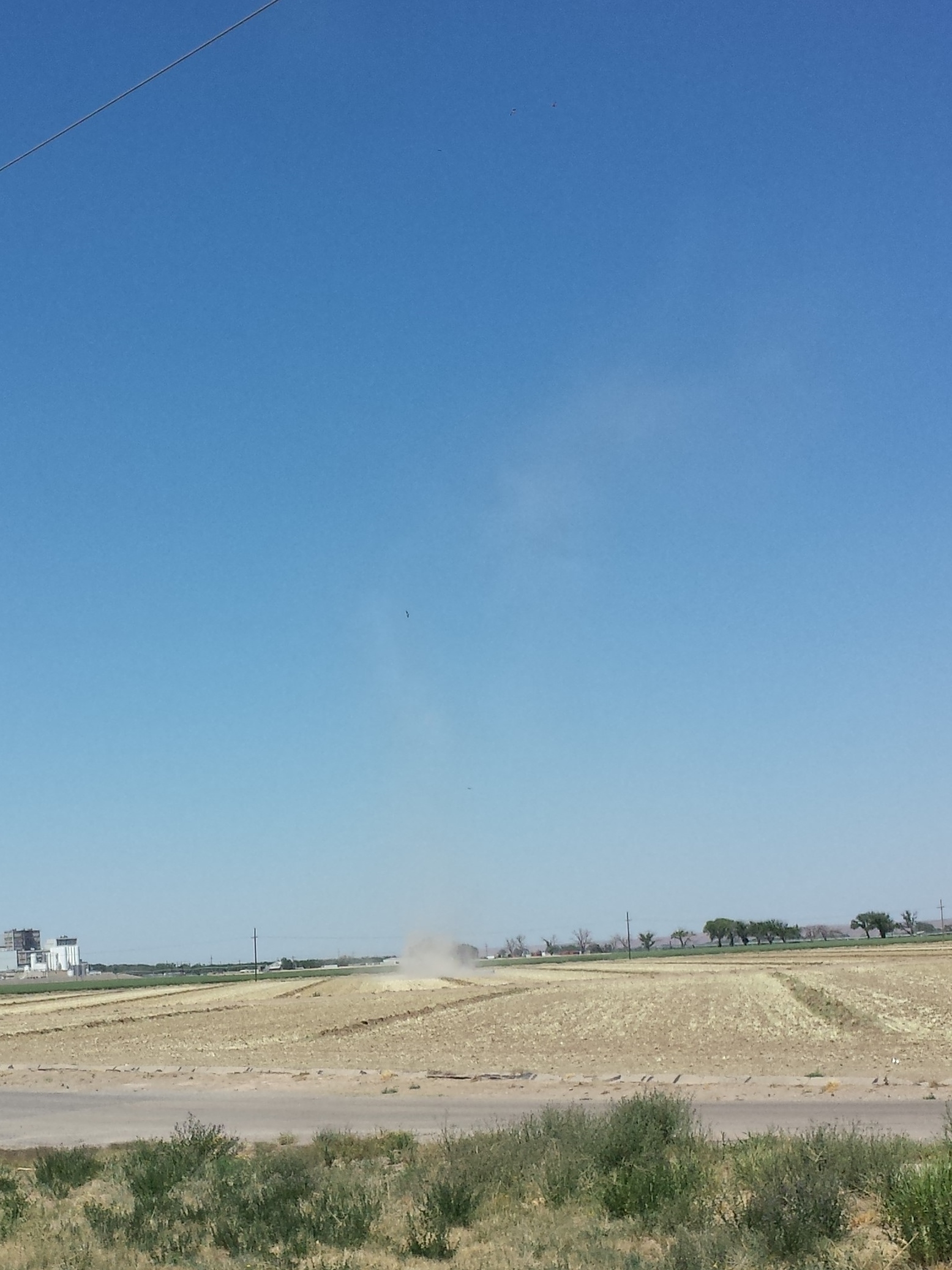 These rolls become tilted and vertical when the comes across a thermal. A thermalis a column of of rising air where warm, surface air rises into a pocket of cooler air above. Thermals are caused by uneven solar heating of the surface and are what birds and paragliders use to stay in the air. Once a dust devil is vertical it can begin picking up dust and sand (and larger items) and acquire that tornado-like appearance. Dust devils can very in size greatly and be up to 1oos of meters wide and over 1000 meters tall. They can last quite a few minutes, too. I saw the one that I grabbed this image of for about 5 minutes.