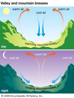 The Valley wind phenomenon is similar to sea breezes. It is a daily wind pattern formed by temperature differences.